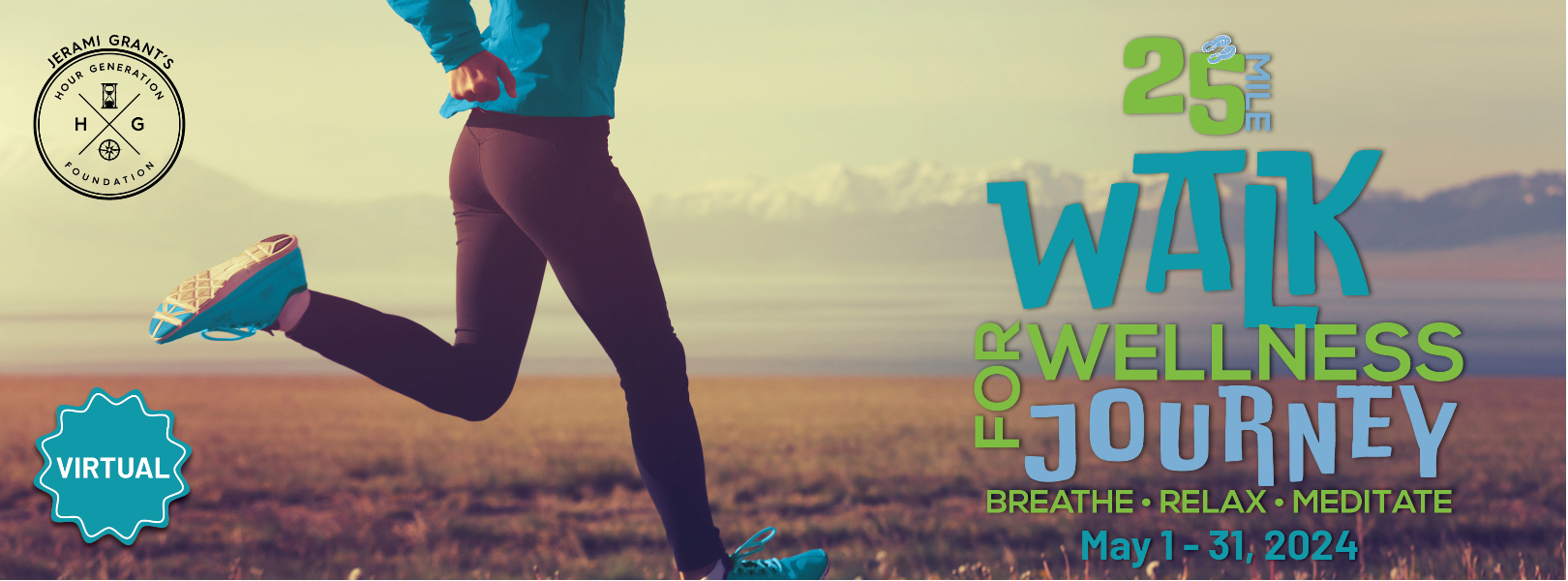 Please join us for the 4th annual Hour Generation Foundation (HGF) Virtual Walk for Wellness Journey, May 1 – May 31. This is an opportunity to move for something that matters–whether it’s for mental health, physical wellness, self- love, or in memory of a loved one. May is mental health awareness month. We are challenging you to walk or run 25 miles or 52,800 steps in one month. This will require spending more time being intentional about you. This is a challenge, so once you pass those 25 miles, you will be pushed by your teammates and coworkers to keep moving. You can reset your goal at any time. Last year’s winner walked 353 miles! Wellness is defined as the act of practicing healthy habits on a daily basis to attain better physical and mental health outcomes, so that instead of surviving you are thriving. There are four dimensions of wellness; Spiritual, Emotional, Physical, and Social. This challenge allows all four of these dimensions. As you participate in this virtual walk/run, you can choose your own course to walk, run, and/or bike, in your community. You can also create your own custom fundraising page and share your personal link on social media! Participants will earn additional points throughout the 30 days for logging in their daily wellness activities. Watch yourself, your team and all participants move on our map and leaderboards towards our collective goals. Cheer on your fellow racers!! Brag about your streaks or longest runs! How do I get started and participate?Participate in the HGF Walk for Wellness by following these 3 simple steps! STEP 1REGISTER for the campaign and join or start a team at charityfootprints.com/hourgenerationwellness/Registration is $30 to participate or $50 with a t-shirt.