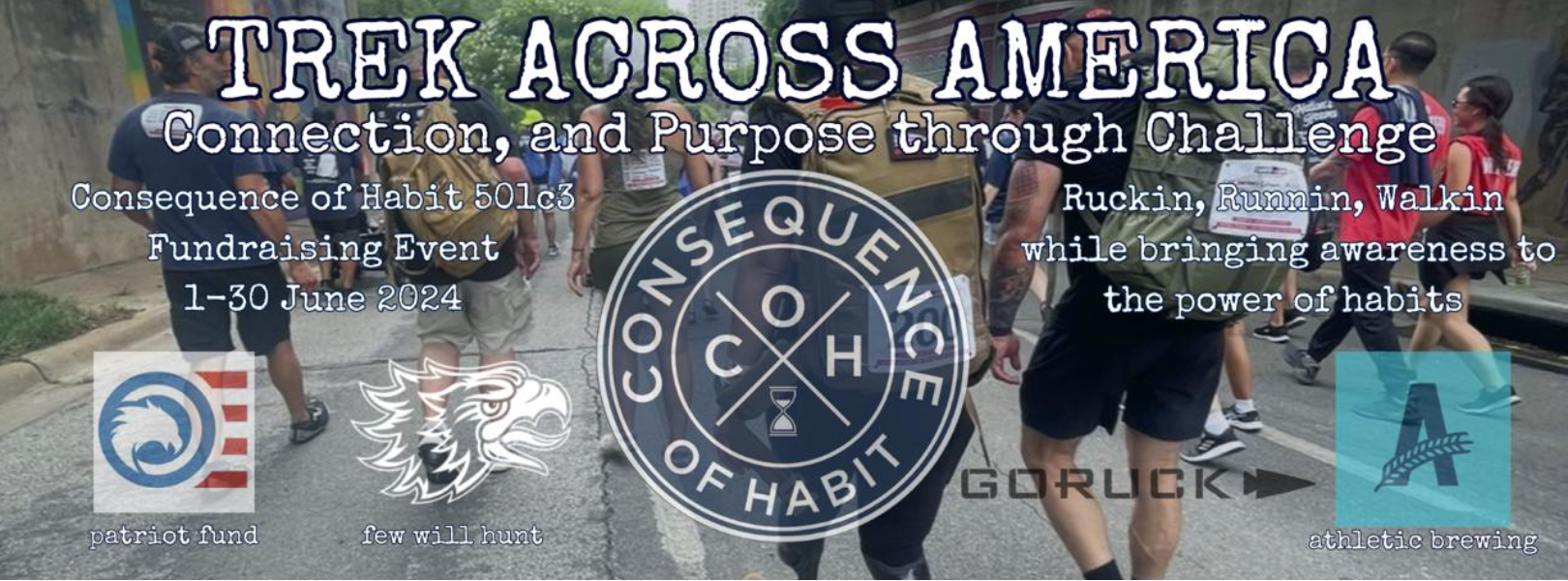 Uniting for Growth, Connection, and Purpose Consequence of Habit (a 501c3 nonprofit) is seeking YOU to help us "Trek Across America". This initiative goes beyond mere fitness and fundraising, it's a platform meant to build connections through a shared experience and challenge.