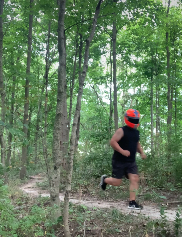 Still training during my racing season. I exercise with my helmet on to get myself to the extreme conditions when I’m racing.