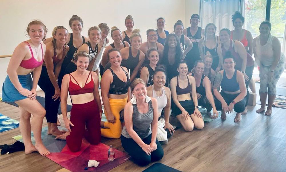 75 minutes of hot power flow yoga. Great way to start Labor Day!